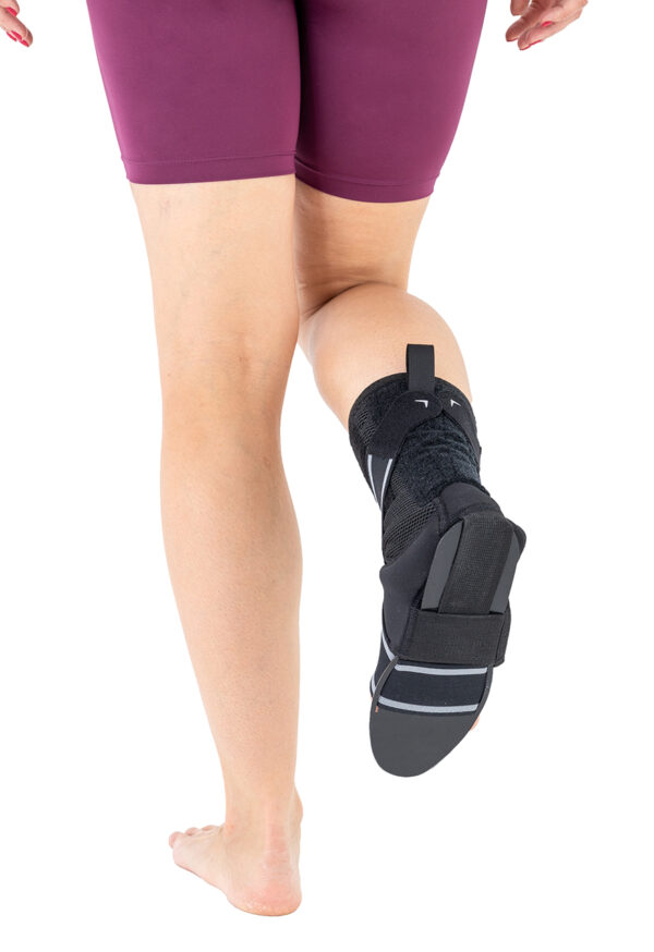 Orteza stopy FOOT-TOP doskonale poprawia dynamikę chodu pacjenta, a także pasywnie i aktywnie koryguje inwersję stopy, gdyż poprzez układ specjalnych podciągów pobudza aktywność dźwigacza stopy oraz zwiększa zasięg kroku. Poprzez osiągnięcie prawidłowego wzorca chodu, aktywnie pracują mięśnie odpowiedzialne za chód tj. pośladkowe czy biodrowo-lędźwiowy. Orteza pozwala również na aktywną pracę pompy mięśniowej, która poprawia ukrwienie kończyn dolnych.