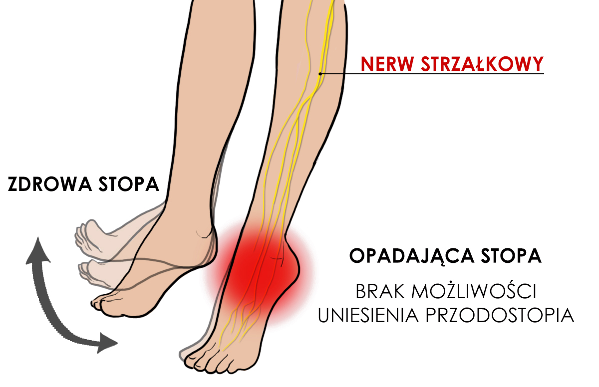 Opadająca stopa to schorzenie neurologiczne, uniemożliwiające uniesienie przodostopia. Powoduje ono, że palce ocierają o podłoże w trakcie chodu, dlatego pacjenci cierpiący na to schorzenie, często kompensują sobie dysfunkcję poprzez wysokie unoszenie kolana lub odwodzenie kończyny po łuku.