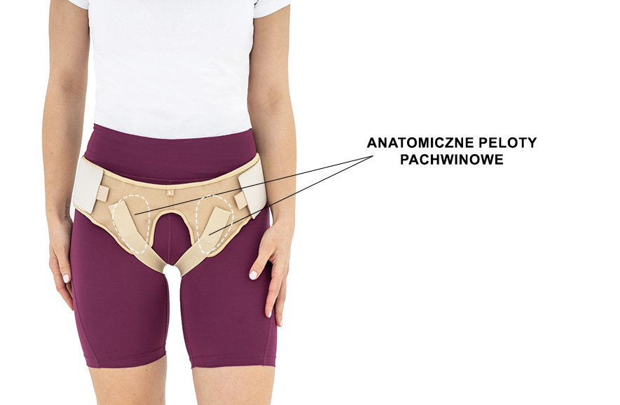 - jako zabezpieczenie pachwin po operacjach, w przypadku słabego i wiotkiego aparatu mięśniowo-powięziowego nie dopuszcza do przemieszczenia się trzewi na zewnątrz pierścienia kanału pachwinowego,