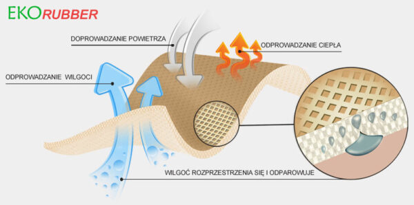 EkoRubber™ to ekologiczna, bawełniana, mocna, bardzo miękka i puszysta guma ortopedyczna posiadająca wysoką elastyczność. Funkcja ta pozwala jej na swobodne rozciąganie się i łatwe dopasowanie do ciała każdego pacjenta. W zdecydowanej większości surowiec EkoRubber™ składa się z ekologicznej zgrzeblonej bawełny, przez co występuje on tylko i wyłącznie w kolorze ecru. Otworki pomiędzy splotami gumy pozwalają na łatwiejsze oddychanie skóry, co poprawia komfort użytkowania wyrobu i ułatwia odprowadzanie potu od ciała pacjenta. Dodatkowo sploty gumy przy większej kompresji wyrobu wykonują jej delikatny mikromasaż. EkoRubber™ jest surowcem bardzo przyjaznym dla skóry.