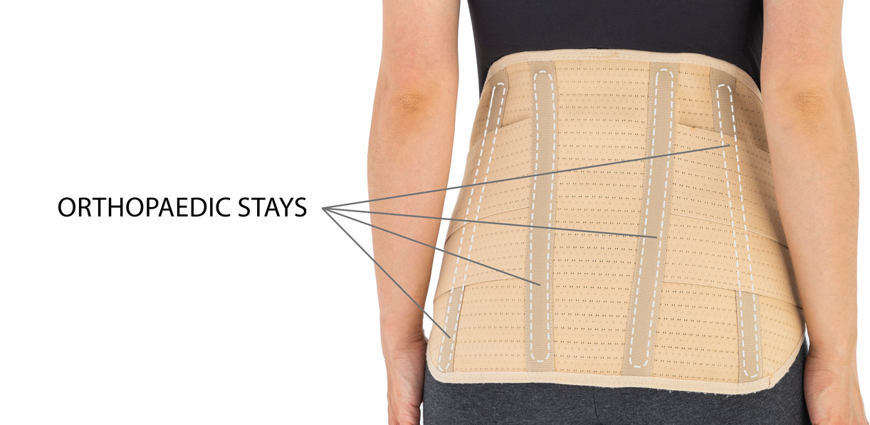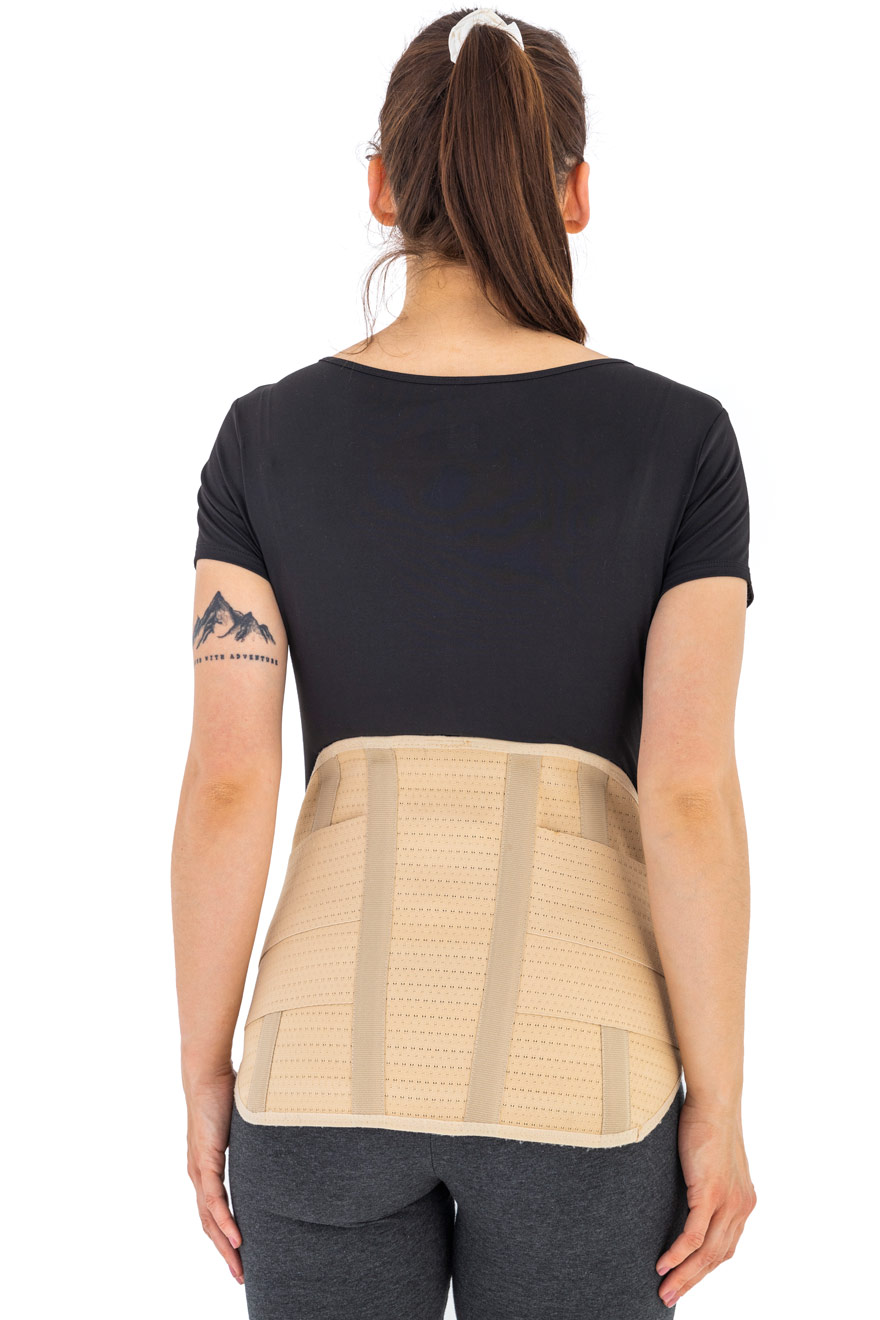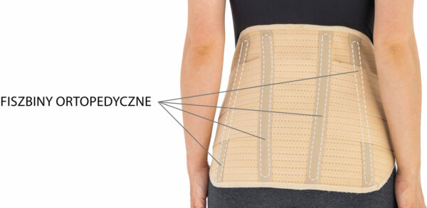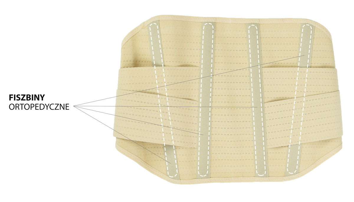 Orteza została zaprojektowana w sposób bardzo anatomiczny, dzięki czemu wyrób łatwo dopasowuje się do sylwetki każdej kobiety ciężarnej, doskonale podtrzymuje brzuch oraz skutecznie stabilizuje odcinek lędźwiowy kręgosłupa. Boczne i tylne części sznurówki wykonano ze specjalnej gumy ortopedycznej AirRubber, która charakteryzuje się jednokierunkową elastycznością oraz uzyskaną w procesie dziania perforacją. Otworki pozwalają na łatwiejsze oddychanie skóry co poprawia komfort użytkowania wyrobu. W tylnej części ortezy zainstalowano w zależności od rozmiaru; cztery albo sześć fiszbin ortopedycznych oraz dwa elastyczne zespoły napinające dodatkowo podtrzymujące brzuch osoby ciężarnej. Fiszbiny ortopedyczne posiadają ściśle określony stopień elastyczności, który uzyskano dzięki zastosowaniu właściwych tworzyw sztucznych i odpowiedniego procesu ich wytwarzania.