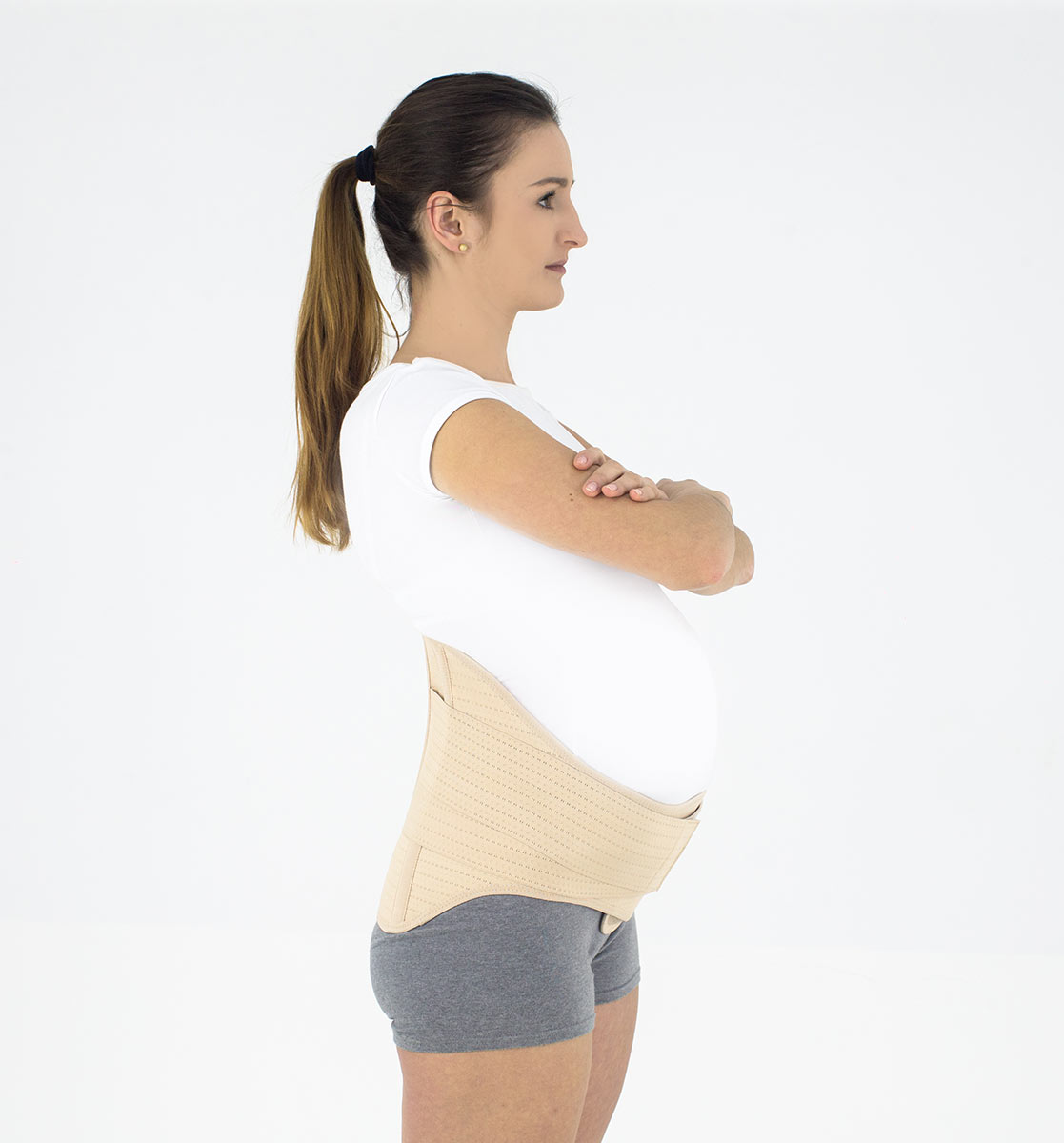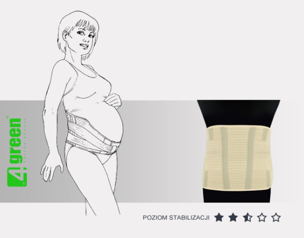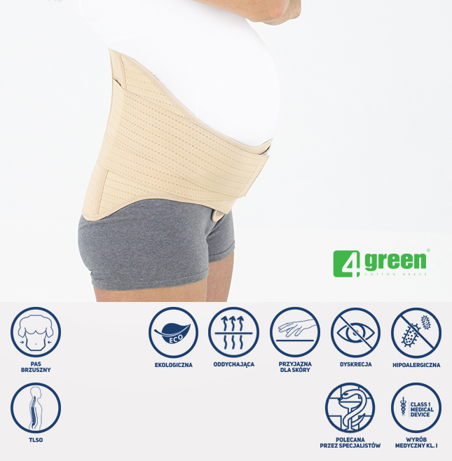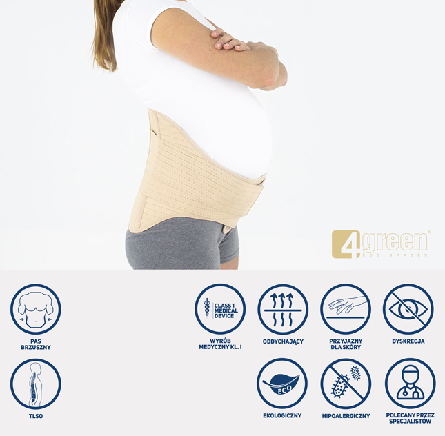 Pas ciążowy jest beżowy i niewidoczny pod ubraniem. Doskonale odciąża dolny odcinek kręgosłupa, co pomaga zmniejszyć ból pleców.