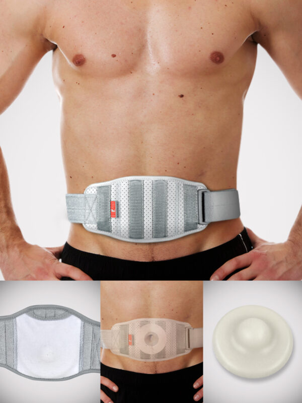 Przepuklina brzuszna to stan, w którym części narządów znajdujących się w jamie brzusznej, najczęściej jelit, przesuwa się poza jej granicę. Z biegiem czasu przepuklina brzuszna może się powiększać, a jej objawy narastać. Wszystkie rodzaje przepukliny brzusznej objawiają się elastycznym uwypukleniem, najczęściej w okolicy nadbrzusza, pępka, pachwiny lub blizny pooperacyjnej. Uwypuklenie to ma postać twardego i napiętego guzka, którego nie można cofnąć i niejednokrotnie wywołuje on bóle brzucha, które bywają mylone z chorobą wrzodową. Przepuklina brzuszna Przepuklina pojawia się w momentach życia, kiedy powłoki brzuszne są osłabione. Występuje u dzieci w okresie wzrostu oraz u osób starszych, u których wszystkie tkanki słabną. Przepuklinie sprzyja duży wysiłek fizyczny, zwłaszcza polegający na dźwiganiu. Można się więc jej nabawić trenując intensywnie w siłowni. Na przepuklinę narażone są także osoby z nadwagą, może przydarzyć się kobietom w ciąży oraz mężczyznom z przerostem prostaty, a także osobom cierpiącym na przewlekłe zaparcia. Doskonałym rozwiązaniem zanim pacjent zdecyduje się na zabieg operacyjny jest używanie brzusznego pasa przepuklinowego. W tym celu zaprojektowaliśmy pas przepuklinowy ze specjalnie wyprofilowaną pelotą silikonową AM-PPB, który podtrzymuje i ogranicza powiększanie przepukliny brzusznej.