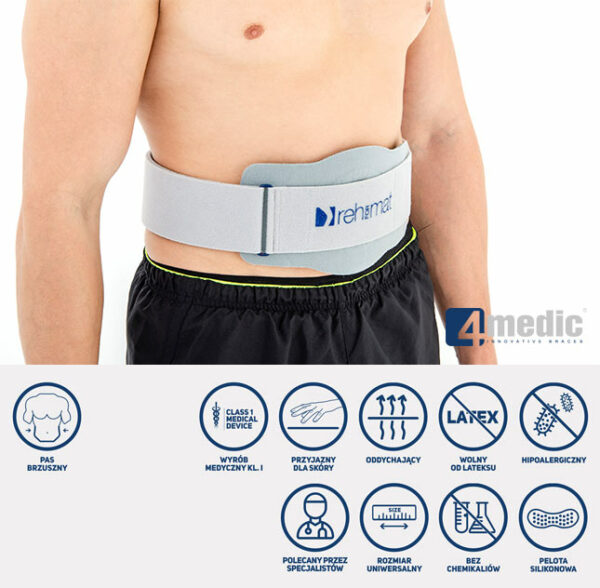 PAS PRZEPUKLINOWY BRZUSZNY Z PELOTĄ SILIKONOWĄ