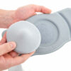 Klient może sam dokonać wyboru pomiędzy dużym i małym rozmiarem tej peloty – adekwatnie do wielkości przepukliny.   Sposób doboru pelot: Przepuklina brzuszna o średnicy10 cm – PELOTA MAXI AM-PPB Pelota ta została anatomicznie wyprofilowana, a zastosowanie miękkiego silikonu powoduje, że idealnie dopasowuje się ona do ciała pacjenta i szczelnie zamyka otwór przepukliny, dostosowując się do jego kształtu. Dzięki zastosowaniu na pelotę tak plastycznego surowca, nawet długotrwałe stosowanie ortezy nie powoduje powiększania otworu przepukliny. AM-PPB
