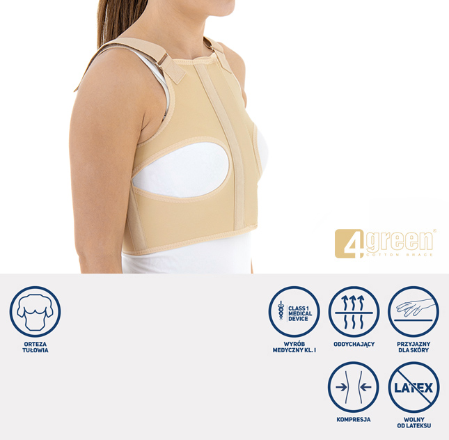 Stabilizuje zewnętrznie klatkę piersiową. Zmniejsza występujące dolegliwości bólowe i ułatwia wykonywanie koniecznych ćwiczeń oddechowych. Pas został wykonany z z innowacyjnego surowca ProFit™.