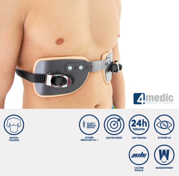 Orteza EXCAVATUM powinna być stosowana jak najdłużej, nawet 23 godziny na dobę w czasie leczenia. W połączeniu z aktywną rehabilitacją i ćwiczeniami oddechowymi, doskonale modeluje klatkę piersiową i przywraca fizjologiczne ułożenie organów wewnętrznych.