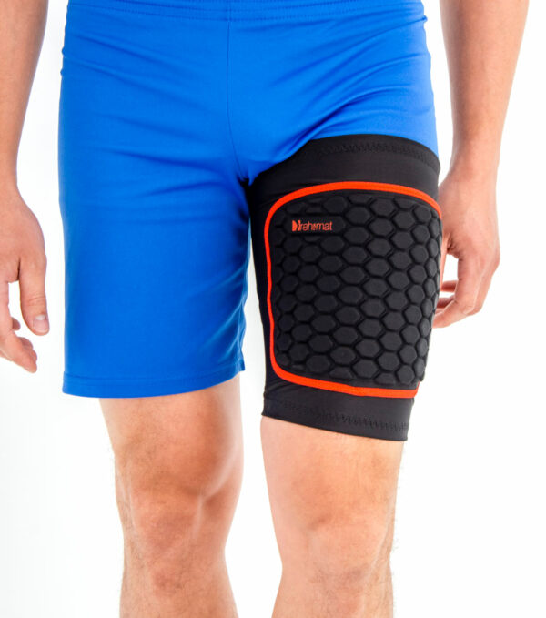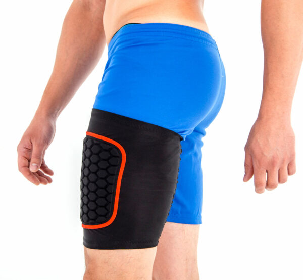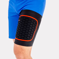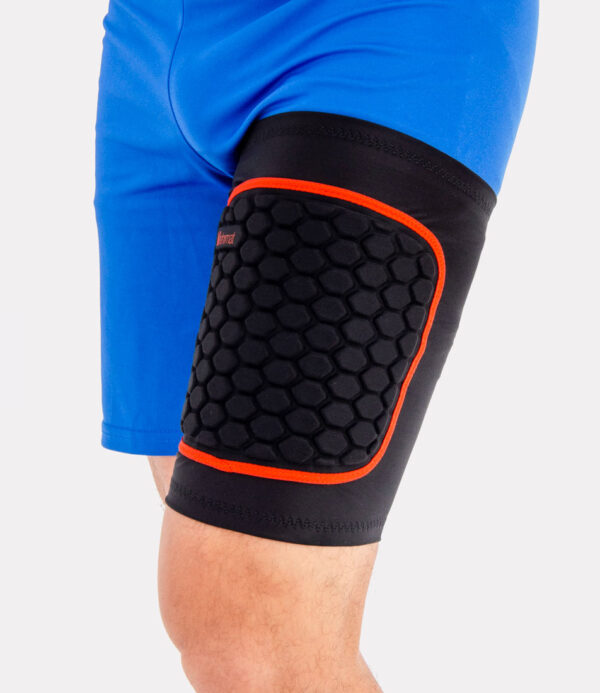 Nasz sportowy ochraniacz uda został wyposażony w specjalną termoformowaną komfortową wkładkę z pianki w kształcie plastrów miodu o nazwie HONEYCOMBactive™. Wkładka ta chroni tkanki miękkie i kości przed urazem na skutek uderzenia lub upadku.