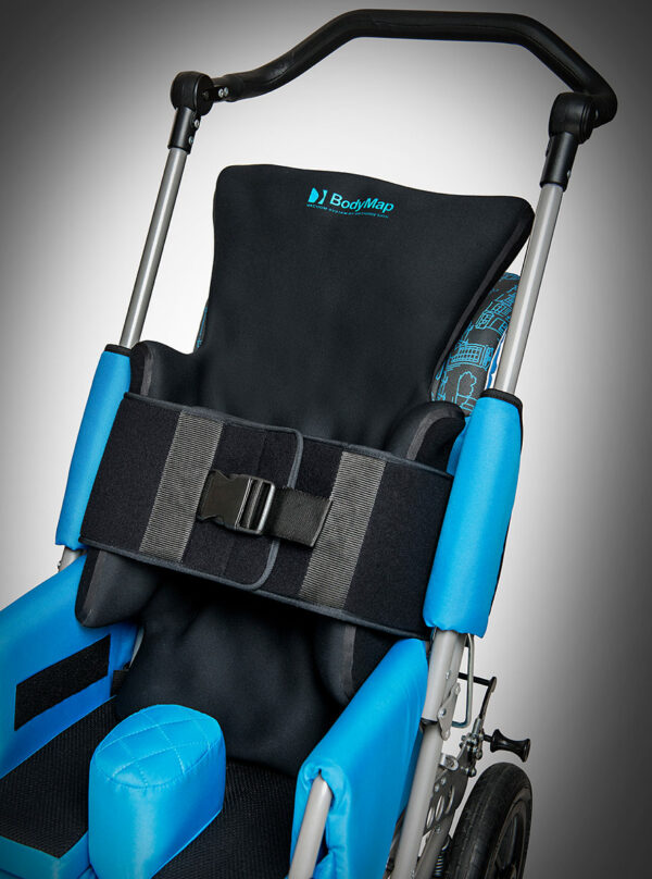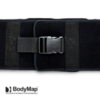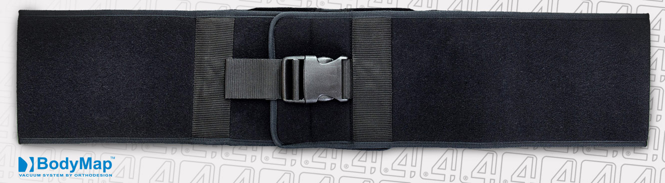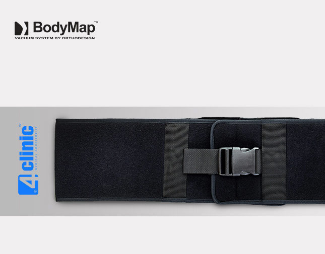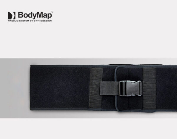 PAS PIERSIOWY NIEELASTYCZNY – to uniwersalny, regulowany pas służący do stabilizacji pacjenta na poduszce, może być także wykorzystany do obwodowego zamocowania poduszki BodyMap na foteli, wózku inwalidzkim, krześle itp. Pas posiada specjalne zapięcie z mocnych rzepów co pozwala na przycięcie go na wybraną długość w wyznaczonych do tego miejscach. Pas dodatkowo zabezpieczony jest taśmą z klamrą.