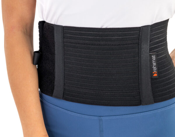 Wygodne, szerokie zapięcie na rzepy pozwala na płynną regulację kompresji pasa, w zależności od indywidualnych potrzeb użytkownika.