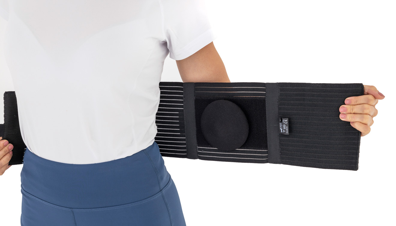 Prosty i szybki demontaż peloty pozwala na stosowanie pasa bez peloty silikonowej jako ogólnego zabezpieczenia powłok brzusznych, np. po operacjach chirurgicznych.