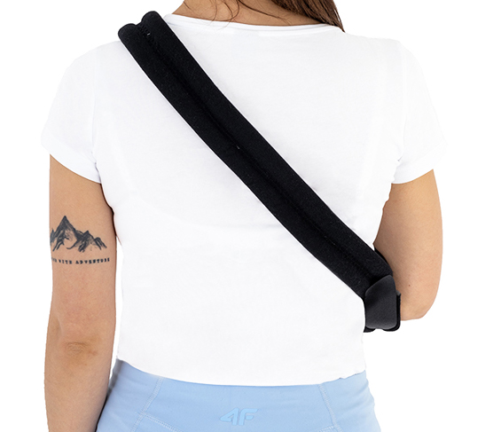Pediatryczny temblak kończyny górnej OKG-25 powstał z myślą o szybkim i skutecznym unieruchomieniu dziecięcej ręki. Zapewnia wsparcie dla barku, łokcia i nadgarstka oraz zapobiega rotacji kończyny. Jest niezwykle lekki i komfortowy w noszeniu nawet dla najmłodszych użytkowników. Dzięki innowacyjnej konstrukcji, temblak posiada jeden, uniwersalny rozmiar, który odpowiada większości małych użytkowników. Temblak pediatryczny OKG-25 przebiega przez tułów użytkownika omijając okolice karku. Takie rozwiązanie nie obciąża kręgów szyjnych i zdecydowanie zwiększa komfort użytkowania. Połączenie pasa z rzepowym zapięciem na haczyk zapewnia dziecku łatwą regulację podparcia ramienia. Innowacyjny projekt pozwala na skuteczne unieruchomienie całej kończyny górnej. Zastosowanie specjalnej przeplatanej konstrukcji zapobiega niekontrolowanemu odwiedzeniu kończyny górnej od tułowia, rotacji barku czy przedramienia. Optymalna długość produktu, pozwala na jego łatwe przycięcie do pożądanej długości, aby spełnić indywidualne potrzeby użytkownika. Pediatryczna orteza kończyny górnej OKG-25 została wykonana z lekkiego i oddychającego materiału. Produkt pasuje zarówno na prawe lub lewe ramię.