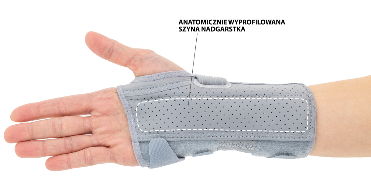 1. Stabilizuje staw promieniowo nadgarstkowy, odciąża przyczepy mięśni przedramienia i ręki.