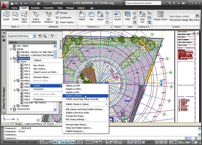 Używany przez nas do projektowania AutoCAD oferuje jeszcze bardziej zaawansowane narzędzia do udostępniania danych, na przykład możliwość eksportowania plików DWG do starszych wersji formatu DWG, a także możliwość eksportowania i importowania plików DWF z uwagami i znacznikami, a jednocześnie ułatwia importowanie plików DWF i pracę z nimi jako “podkładkami” rysunków. Program AutoCAD umożliwia także publikowanie plików rysunków w formacie Adobe PDF.