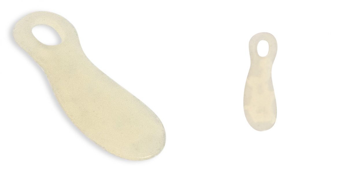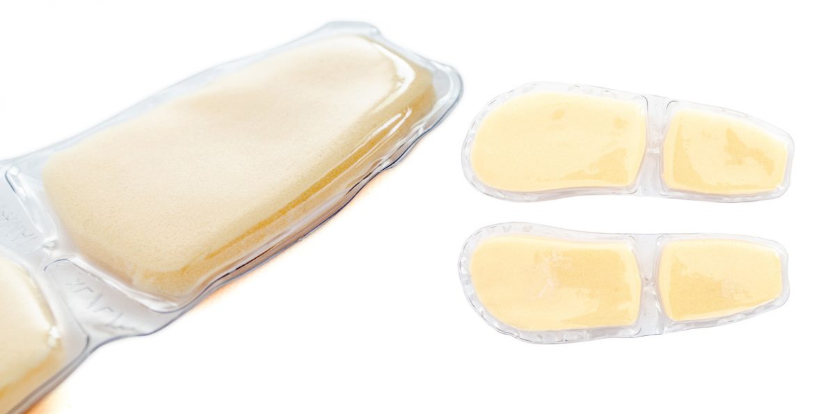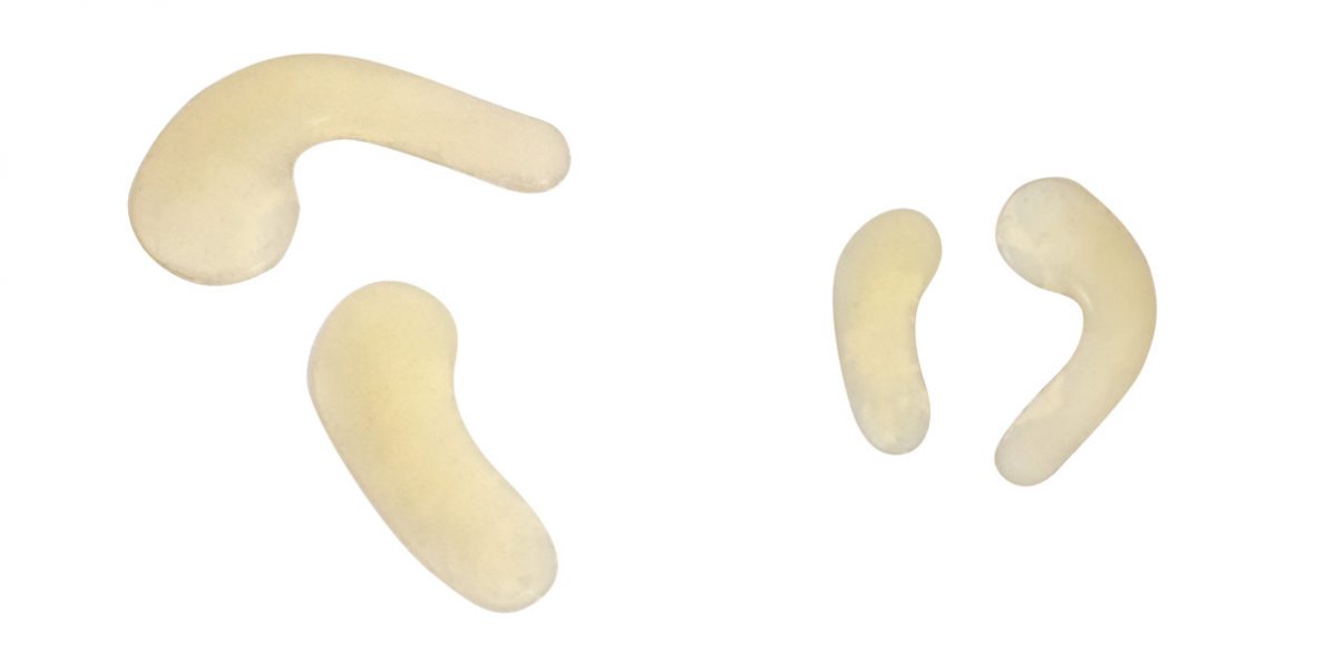 Podpiętki silikonowe w kolorze naturalnym, których rolą jest odciążanie pięt i ostróg piętowych oraz niwelowanie skrótów kończyn.