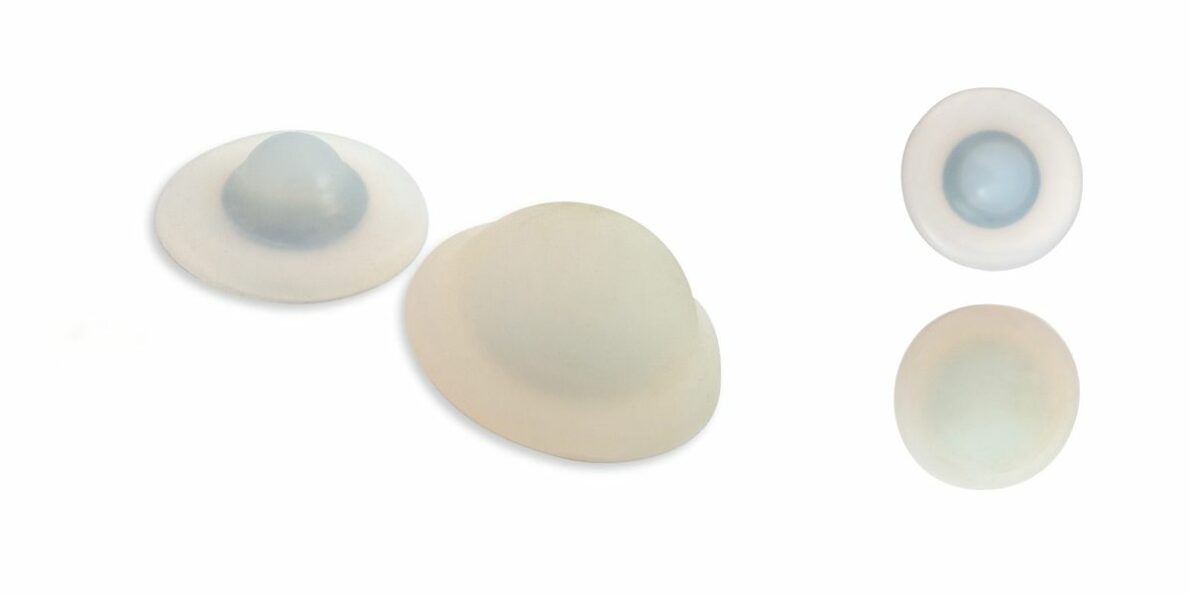 Peloty przepuklinowe w kształcie półkul o różnych średnicach, wykonanych z silikonu w kolorze naturalnym. Peloty te posiadają anatomiczny kształt i wykonane są z silikonu o właściwej twardości i sprężystości, gwarantującej bezinwazyjne i pełne wypełnienie otworu przepukliny brzusznej.